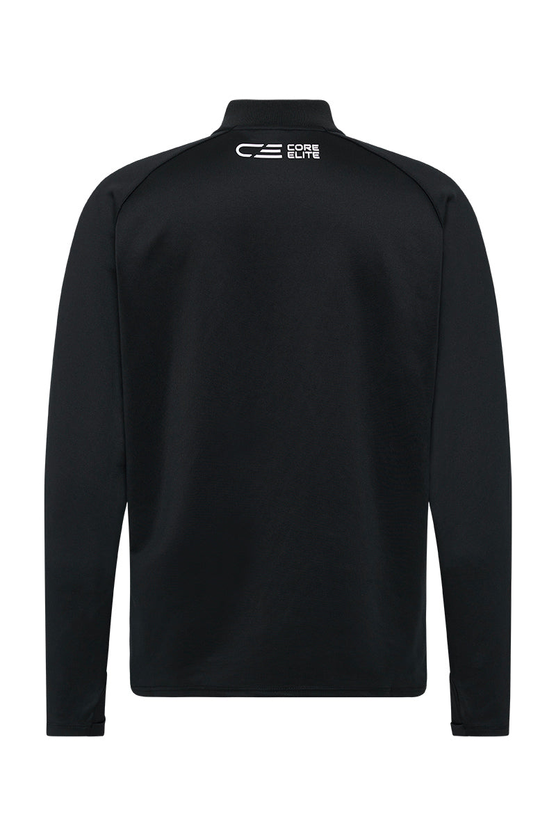 Constructed with tricot polyester for a sleek and contemporary appearance, this 3/4 zip top features a ribbed neck for a sophisticated and comfortable fit. Additionally, it comes equipped with finger loops at the ends of the sleeves to enhance performance during wear.